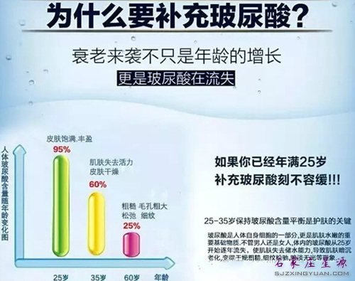 水是生命的源泉,随着时间的推移,衰老的身体会逐渐流失水分,而人体保持水分z重要的就是玻尿酸。玻尿酸会随着年龄的增长而减少,因此你会看到脸上的皱纹越来越多…… 而健康的皮肤含水量应维持在15%—20%左右,玻尿酸的保湿效果是胶原蛋白的16倍,保水值可达1000CC/g,是当今公认的z佳保湿产品。