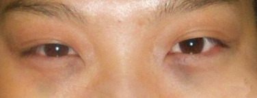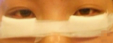 这是手术后第3天的时候拍的,眼睛很红肿,也不能睁很大。
