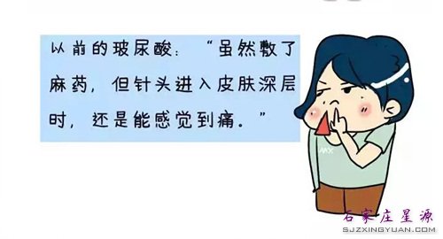 不开刀就能隆鼻、丰下巴、除皱、补水嫩肤……玻尿酸的神奇功效让众多女性喜爱至极。但仍然有些人不敢轻易尝试,原来是害怕疼痛。其实好想变得美美哒,要是不痛就好了!虽然注射玻尿酸之前大多会敷上麻药,但是针头扎入到肌肤深层时,依然能感觉到穿刺的痛,对疼痛敏感的人,就会紧张害怕,影响治疗过程的舒适度。