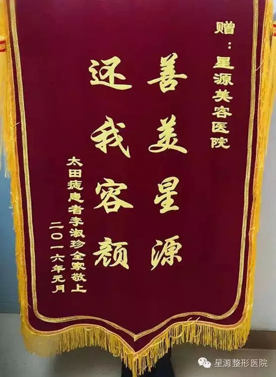 太田痣患者李女士全家赠与星源医疗美容医院美容皮肤科锦旗