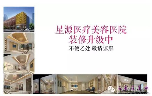 为了给您提供更高端的享受与优质尊荣的服务,星源医疗美容医院近期进行全面装修升级,装修期间正常营业,欢迎爱美的您随时来院进行美丽蜕变。装修期间给大家带来的不便,敬请谅解!升级后的星源将以更宽敞的医疗空间、更顶尖的技术、更专业的团队、更优质的服务,展现在各位面前,为您提供一站式综合形象管理!