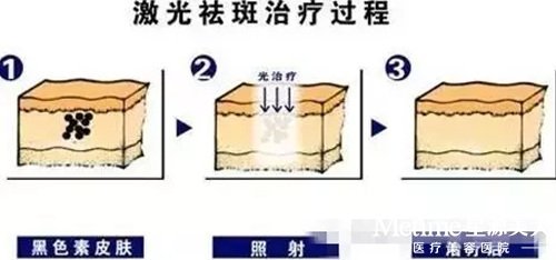 祛斑时,激光会识别皮肤的颜色,对病变的皮肤产生作用,并利用激光能量集中作用于皮肤细胞中的色素颗粒,将其直接汽化或击碎,而后通过淋巴组织排出体外。