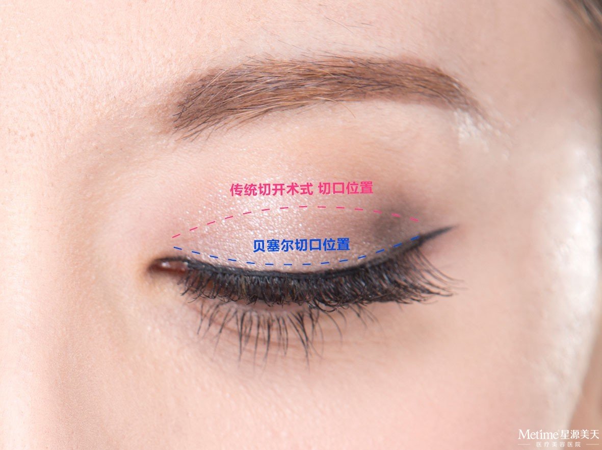 贝塞尔切口在睫毛根部皮肤&薄所以形成的疤痕&浅