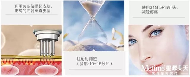 水光针是采取向皮肤深层补充玻尿酸和多种补充营养的注射剂相结合的方式,因此补水效果非常好,且保湿效果持久,令肌肤持久水润光泽。