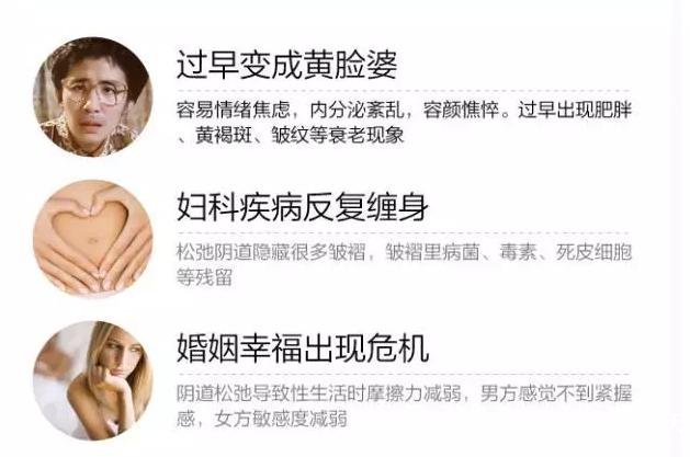 女性30岁以后或性史超过3年的,阴道因使用年限长、经常拉伸而老化松弛。出现阴道松弛宽大,刺激反应降低,阴道壁渗液减少,直接影响双方的性质量。