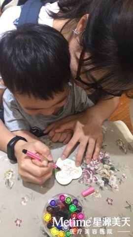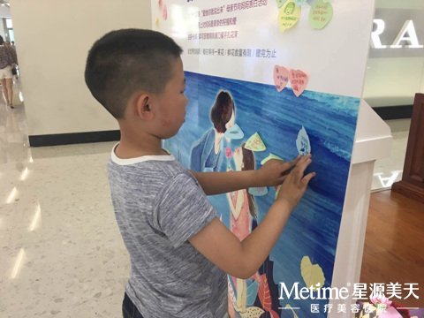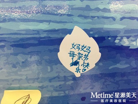 小帅哥很用心的把对妈妈的爱贴在母爱墙上