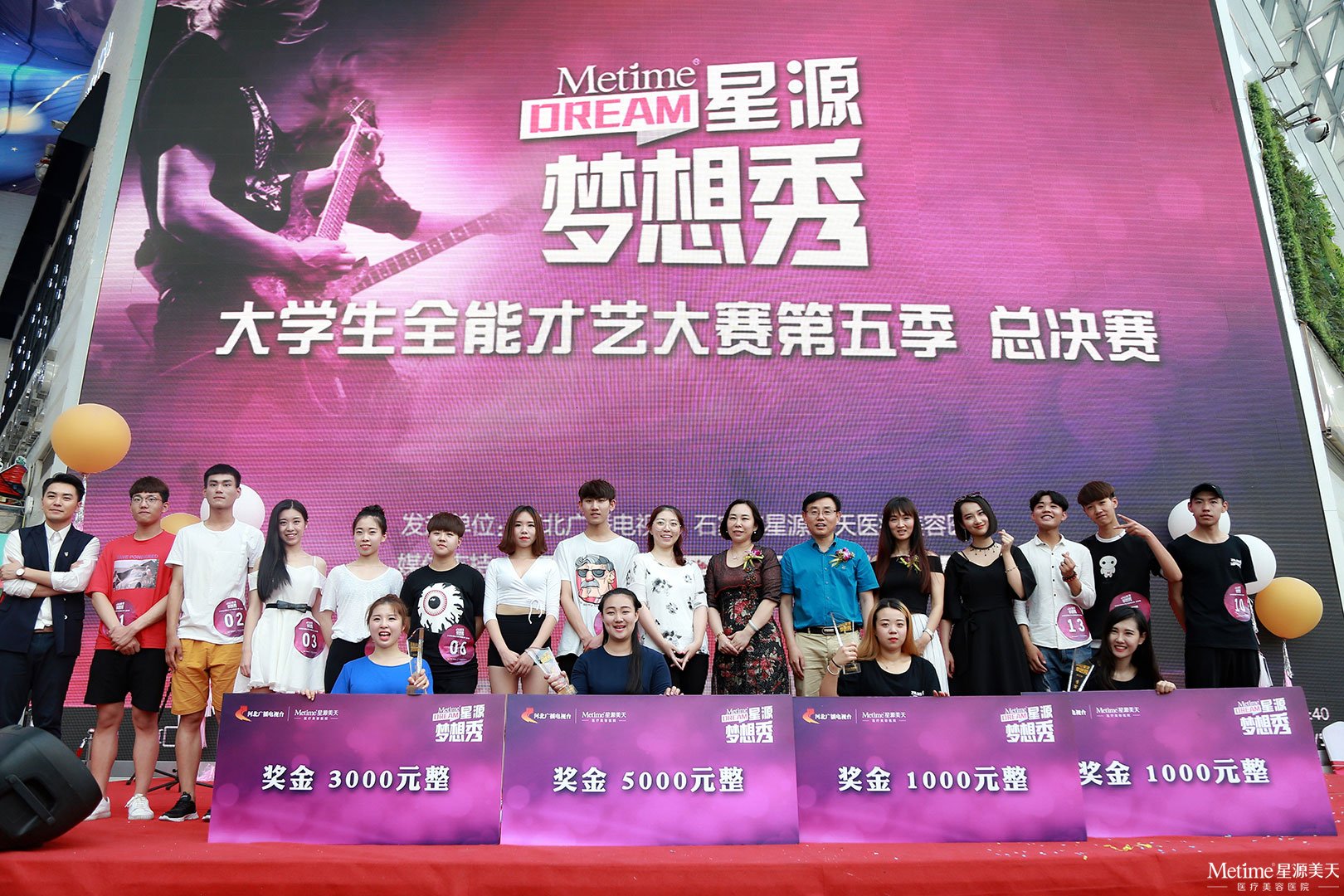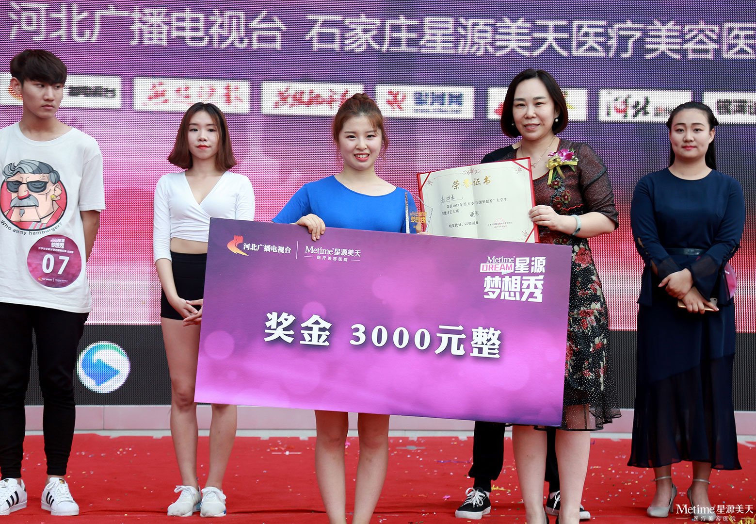 经过激烈的比拼和评委们的认真评选,&终由来自 河北师范大的解牧歌同学、河北师范大学汇华学院的赵烨晨同学、河北师范大学的康雨馨同学、分别荣获本季星源梦想秀的冠、亚、季军,将分别获得由星源美天医疗美容医院提供的5000元、3000元、1000元现金奖励,而&佳人气奖则由河北师范大学汇华学院的田甜斩获,并获得1000现金奖励,为鼓励表现优秀的选手,今年还增设了&佳潜力奖,由河北经贸大学的金蕊,河北医科大学的连颖轩,石家庄市艺术学院王泽轩获得,奖品为时尚旅行箱一个。其他入围选手分别得到星源美天送出的精美音响一个。