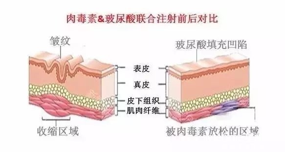 肉毒素简称肉毒杆菌毒素,是一种阻断神经的毒素,它注射到局部后会阻断乙酰神经胆碱的释放,从而阻断了神经对肌肉的传导,注射到表情纹处可使肌肉发生麻痹,使其神经肉失去神经节,从而达到很好的除皱效果。
