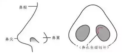 驼峰鼻、鼻头低垂、朝天鼻、鼻头肥大等,