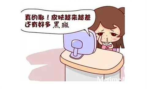 内分泌失调:A、怀孕引起的酷胺酸酶活路,导致黑色素沉着;B、酸碱失调体质偏酸会导致新陈代谢缓慢,引起色素沉着;C、营养不良、缺乏维生素、新陈代谢减慢、导致斑点。