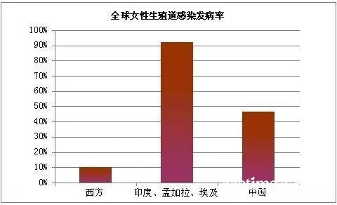 印度、孟加拉、埃及女性的生殖道感染发病率在52%-92%之间