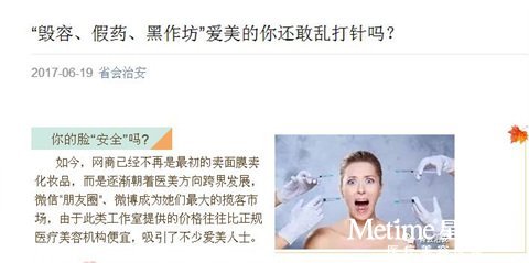 在网上输入有关“肉毒素,玻尿酸”关键词的新闻,类似上文中的各种“医疗事故”数不胜数。微整形不同于传统意义“刀光剑影”的整容外科手术,能在短时间通过对身体部位细微调整达到美容效果,但这种效果只针对正规使用的正规产品,如果消费者贪图便宜买到假冒、未经注册的美容针剂,其风险可能是致命的。