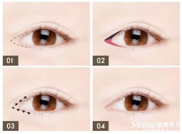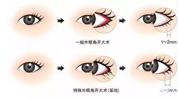 通过切开眼角侧粘膜,延长眼睛的水平长度(2-5mm左右),达到眼睛变大的目的。