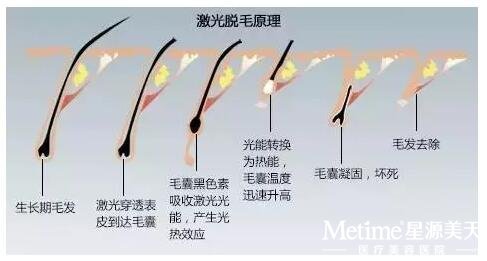 星源美天冰点无痛脱毛运用了激光的选择性光热效应,用调解到特定波长的激光穿过表皮,深入毛囊根部,对其黑色素进行加热,热量蓄积并扩散到整个毛囊,有效深达毛囊,从而破坏毛囊,使毛发失去再生能力,达到持久的脱毛效果。