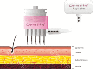 水光针利用负压multi针在皮肤真皮层注入人体因衰老而流失的玻尿酸、胶原蛋白、肉毒素、PRP自体细胞等高端注射产品,使皮肤内吸收并储藏本身重量的1000倍的水分,唤醒细胞再生机能,重现修复皮肤枯萎断裂的细胞。在短时间内重塑紧致平滑富有弹性的肌肤。