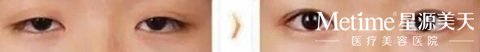 重睑线相对过宽,将切口重新设计在6至8毫米范围内而修复双眼皮,同时去掉原切口。