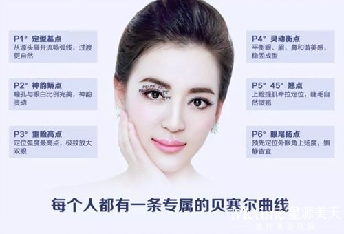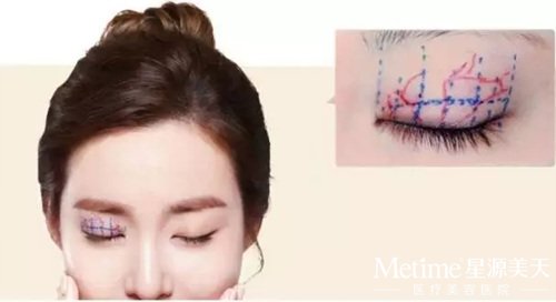 根据数字化定位生成的重睑弧线,用蓝线标识