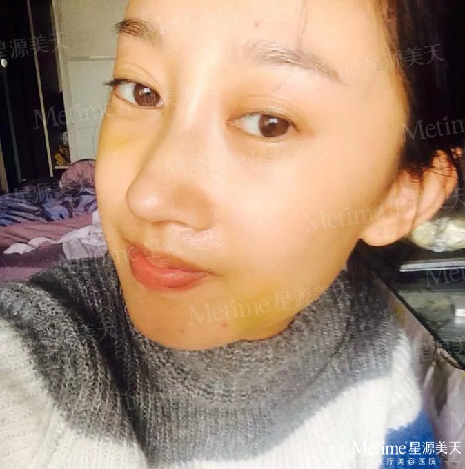 术后的我比想象的要好很多,还以为会肿的像猪头一样,纱布包了一脸呢。其实情况并没有那么糟糕,看我第三天的样子↓