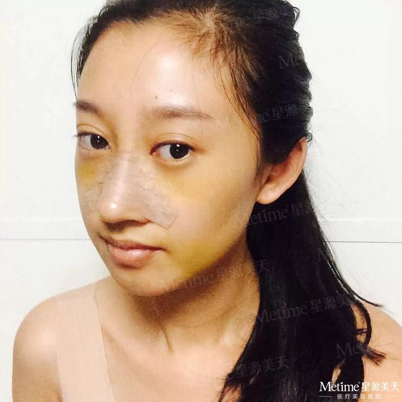 鼻子在慢慢消肿,这个形状好看多啦!五官立体了很多,感觉脸都变小了,哈哈!也可以正常化妆了,对生活没有任何影响。
