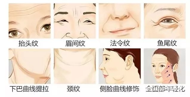 眼角下垂 眉角下垂 面颊下垂 鼻唇沟 颈部皮肤松弛等