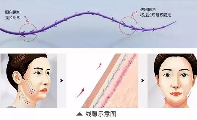 线雕方式推荐:可以做一些浅层的小线,通过在浅层植入线来提升收紧。