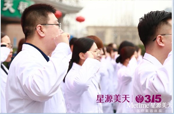 2018年3月15日,星源美天医疗美容医院全体医护人员,在星源美天医疗美容医院副院长闫琨主任的带领下,依排列成整齐的队形,举起右手,握紧拳头,举行了庄严的宣誓仪式。