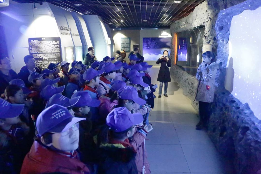 ▲同学们认真的在听讲解员讲解宇宙的奥秘
