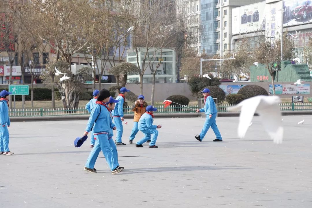 ▲在省博物馆广场游览完毕,同学们来到了