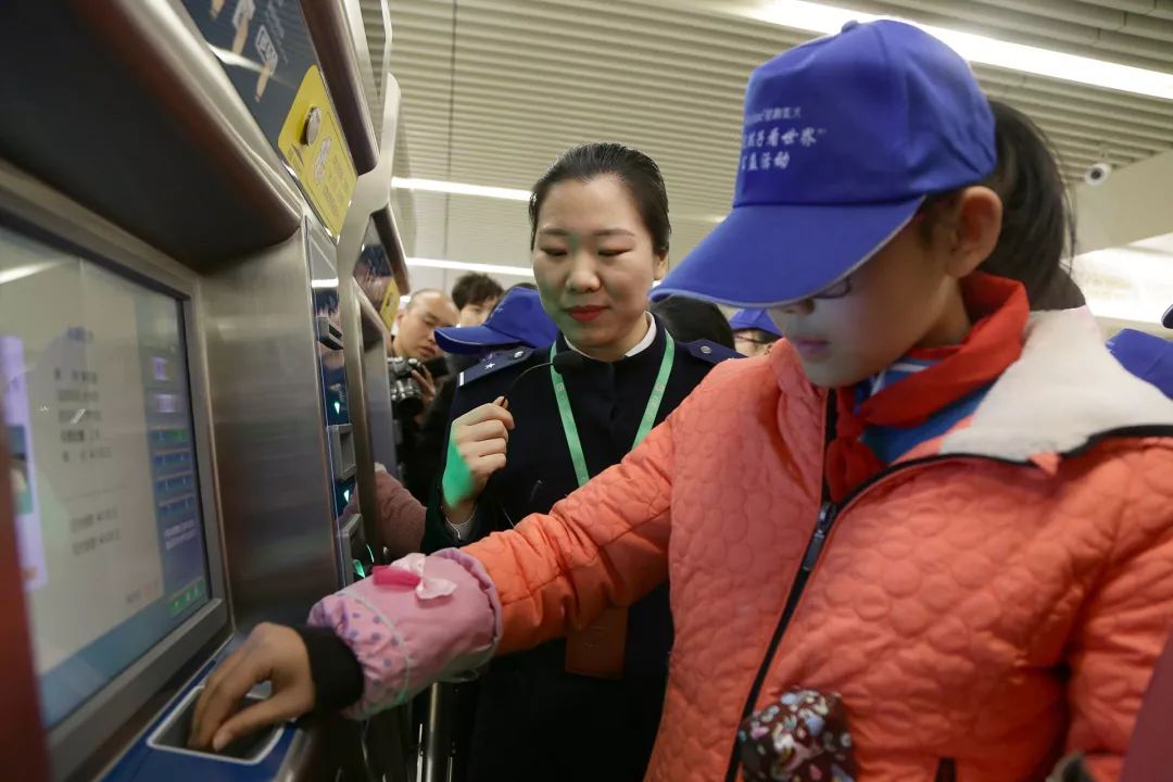 来自行唐县六一小学的同学们参加完“山里孩子看世界”公里活动年度总结大会后,一起来到了石家庄地铁,亲自体验购买地铁票。