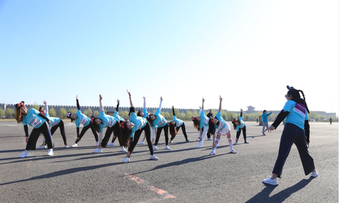 我们的美女瑜伽教练戚悦带大家赛前热身