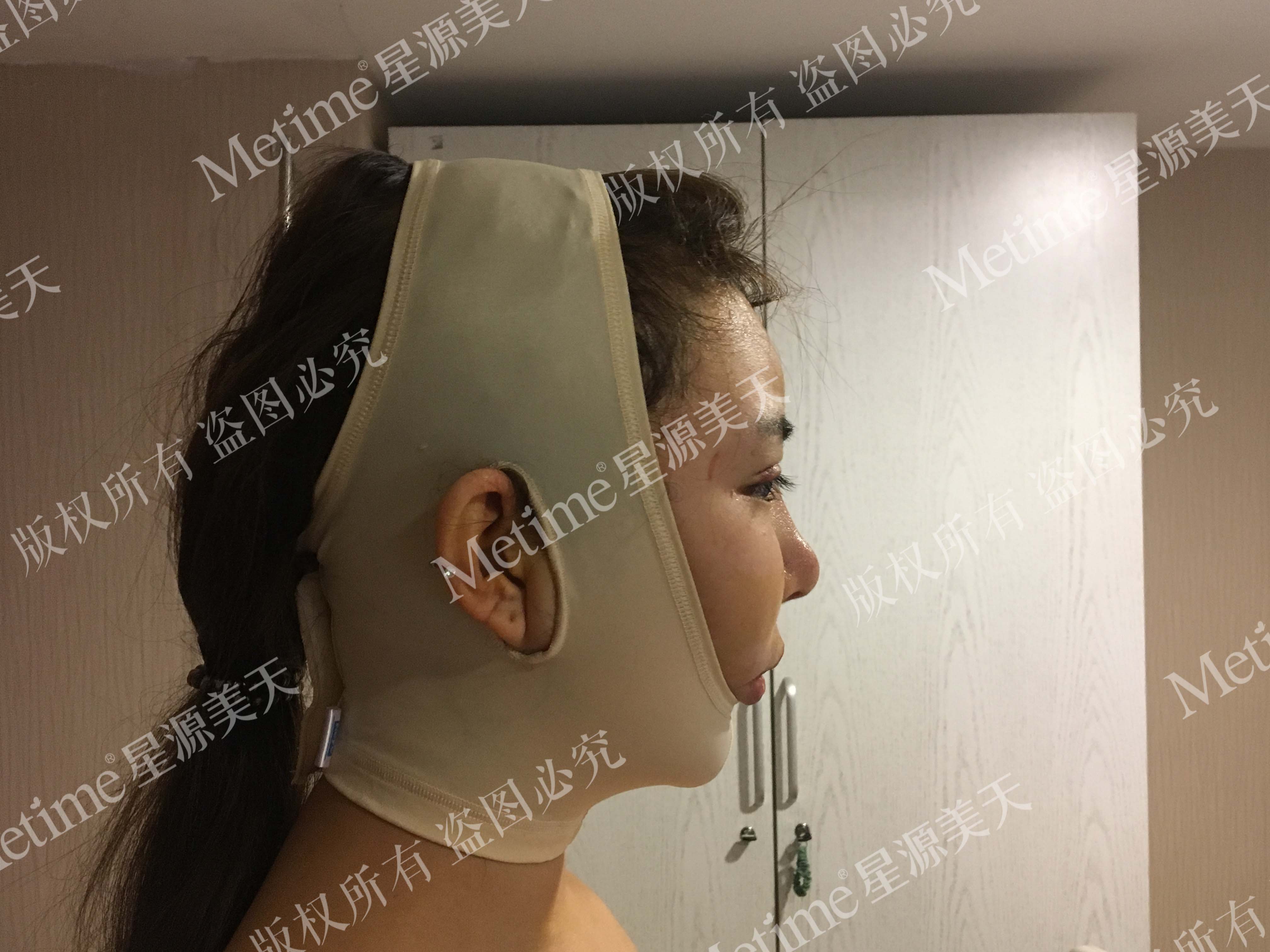 颌颈套已经摘了,摘下来的那一刻惊奇的发现:双下巴不见了,尖尖的下巴立现,终于有了心心念念的小V脸!