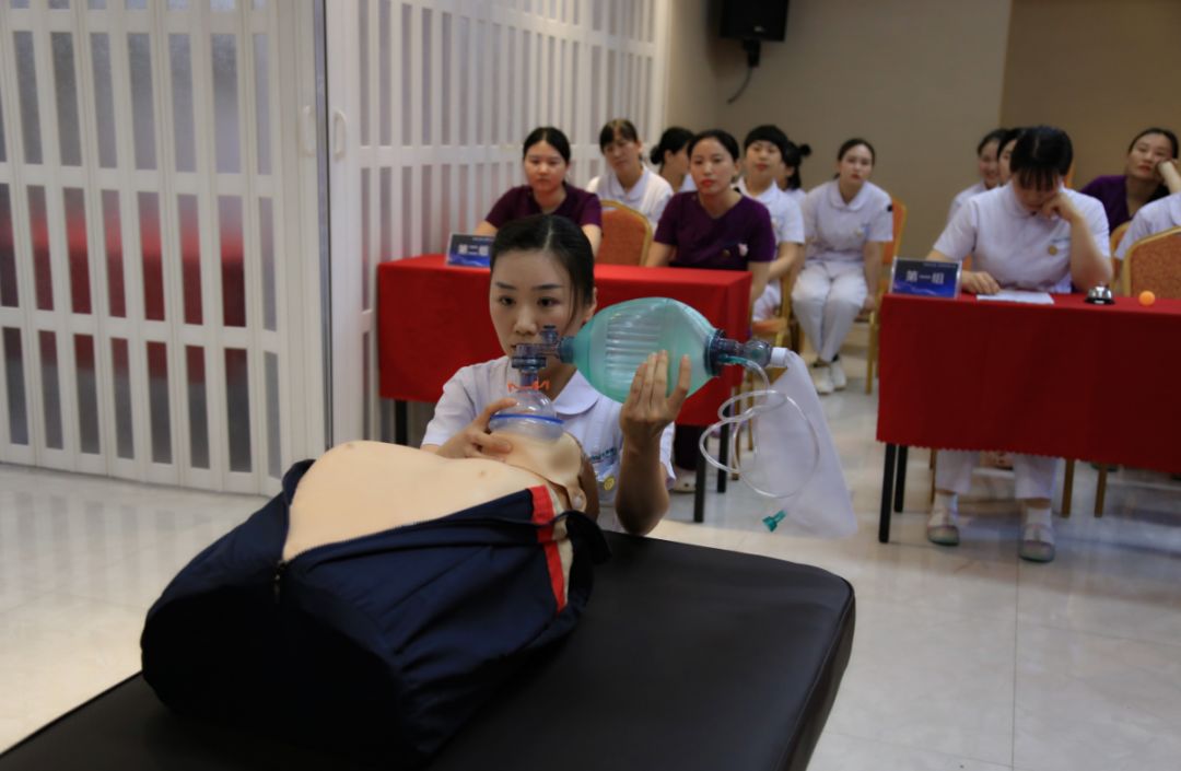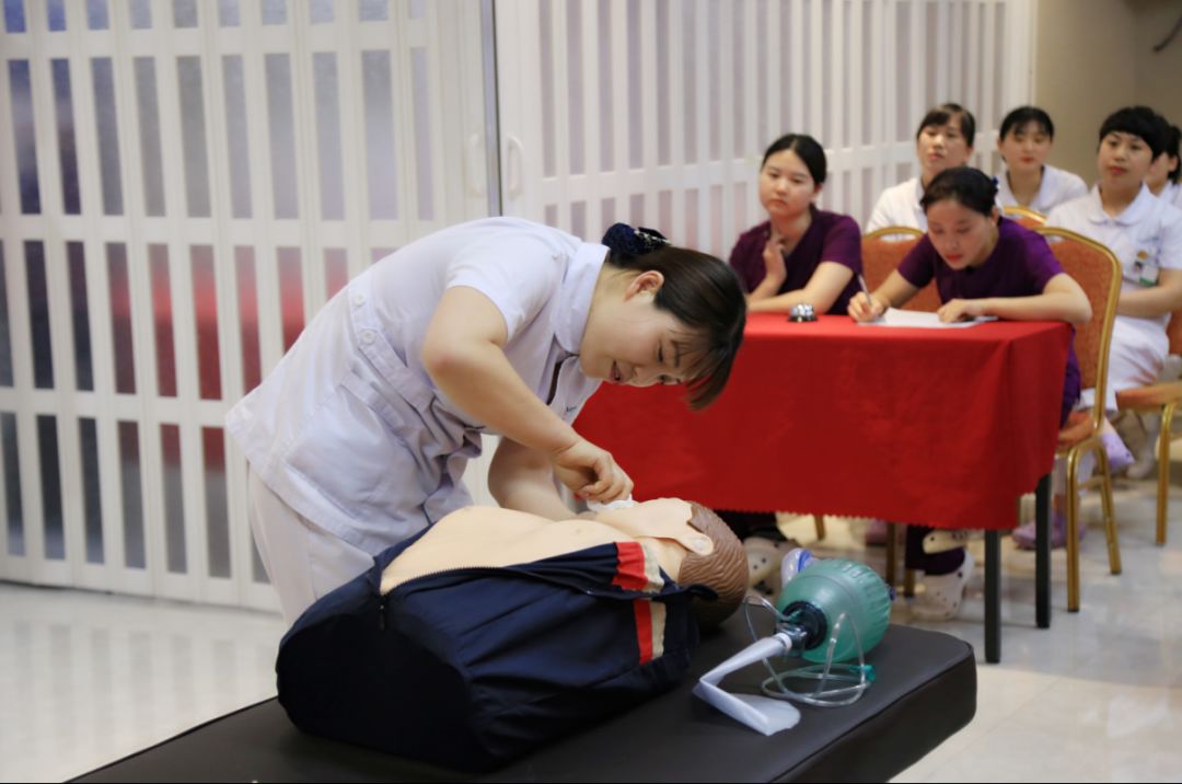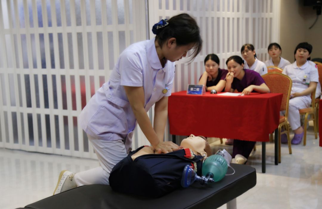 本次大赛立足实战、贴近临床,主要以“强技能 展风采”为主题,比赛内容分为心肺复苏技能操作和理论知识抢答竞赛两部分,其考核形式以参赛护士实际操作正确率为评判标准,考核重点则更关注人性化服务的体现以及参赛人员的临场应变能力和综合素质。理论知识竞赛,要求现场参赛护士们进行抢答。